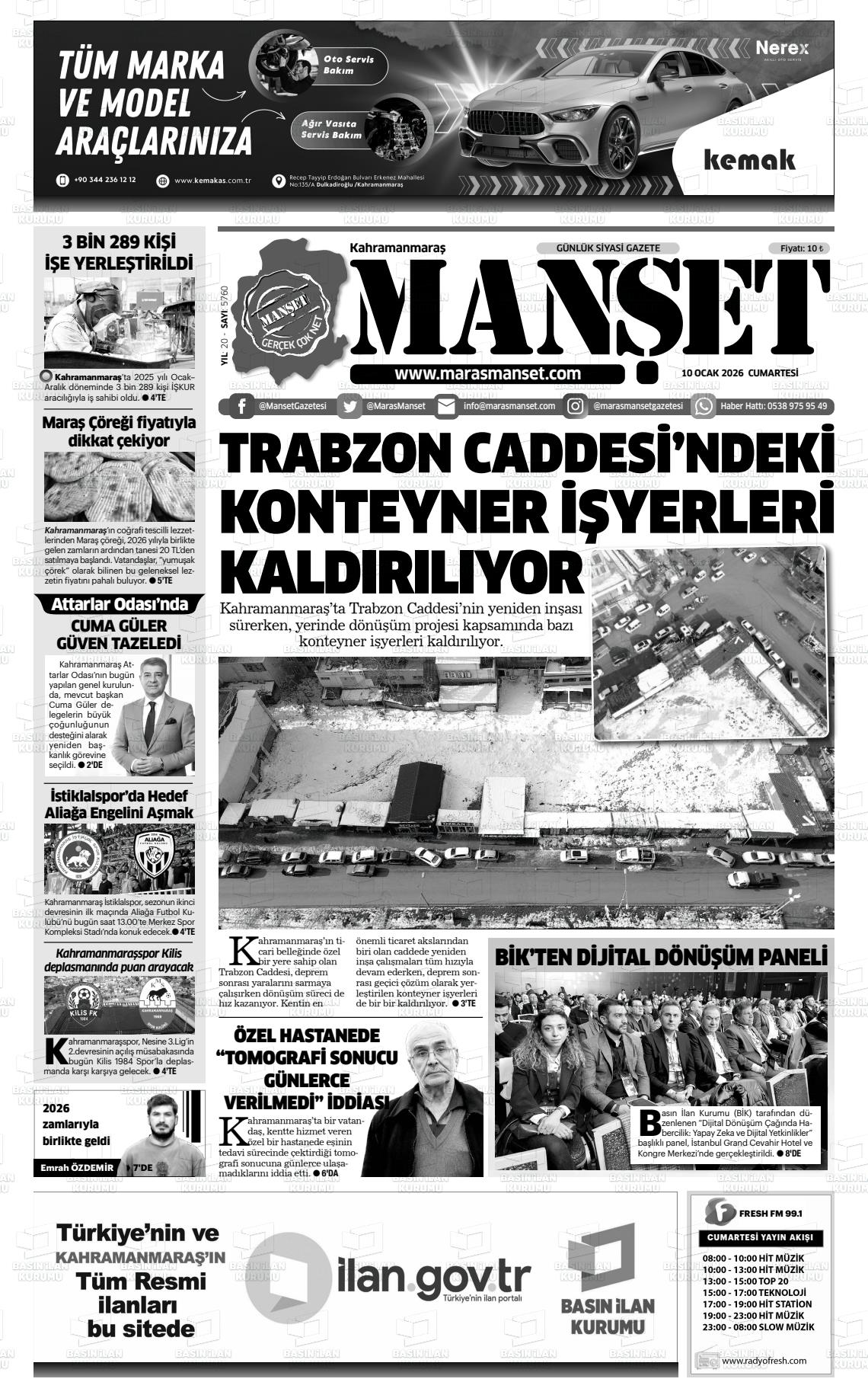 KAHRAMANMARAŞ MANŞET